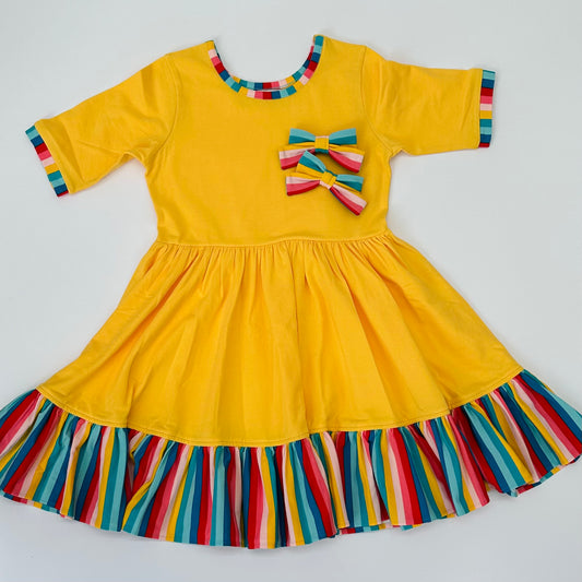 School Stripes/Daffodil Charlee Dress